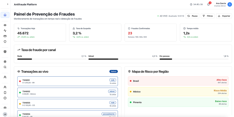 Nuestra plataforma antifraude combina inteligencia artificial y análisis de datos para detectar y prevenir fraudes desde el onboarding hasta las transacciones diarias.
